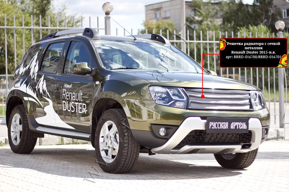 Решётка радиатора. Вариант 1 с сеткой металлик Renault Duster 2010-2014 (I поколение)